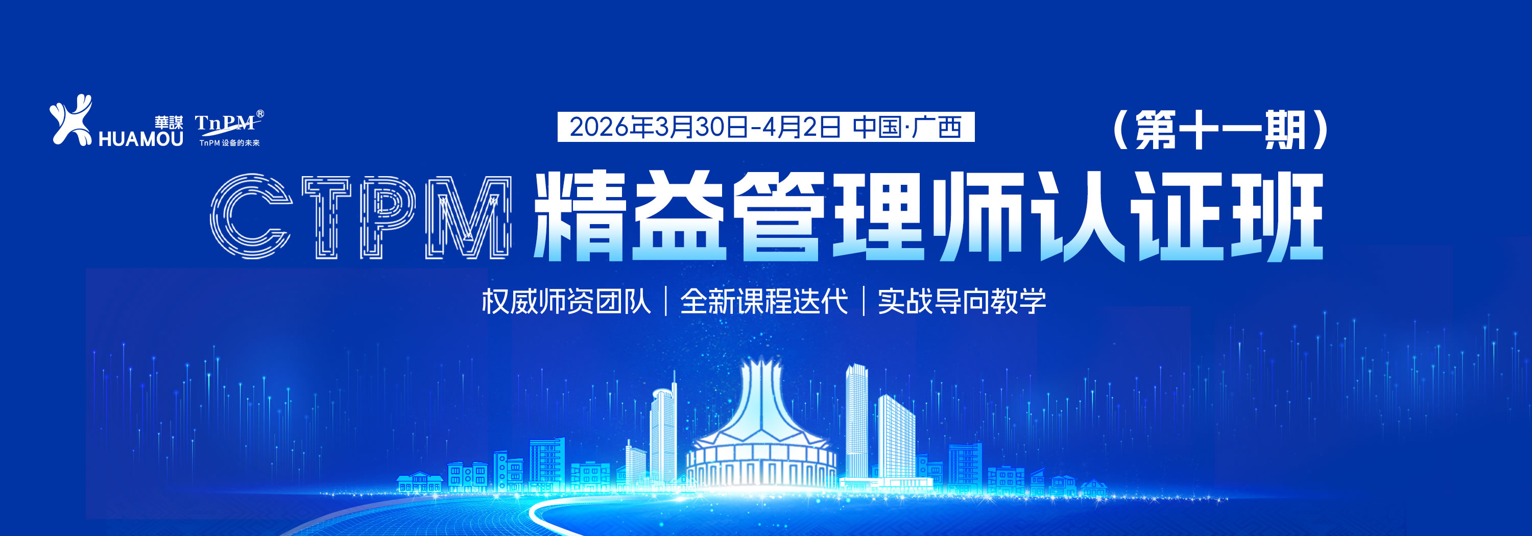 2025-12-01?  關于舉辦CTPM精益管理師認證班 (第十一期)培訓的通知 2025-11-21?  關于舉辦TnPM體系傳承弟子班(第十期)培訓的通知 2025-11-21?  2026年1月12-14日舉辦的阿拉伯國家第23屆國際資產設施與維護管理大會邀您來參加! 2025-10-17?  【破局設備管理轉型】華謀咨詢公司助力2025(第六屆)中國設備管理新趨勢交流會 2025-10-16?  《設備全生命周期管理與智能運維實戰特訓營》10月29-31日即將在深舉辦! 2025-10-15?  【客戶動態】萬達石化集團召開精益TnPM管理體系項目二期結項暨三期啟動會議